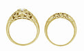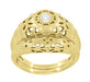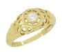 Yellow Gold Art Deco Low Dome Open Filigree Flowers Diamond Engagement Ring