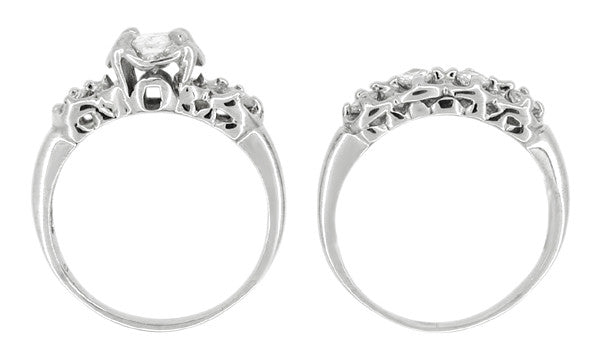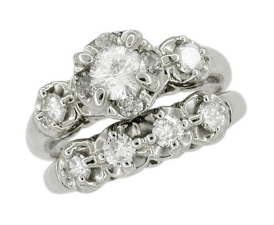 Mid Century Diamond Antique Wedding Ring Set in 14 Karat White Gold