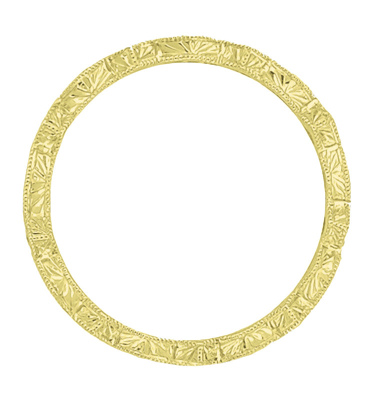 Art Deco Sculptural 14 Karat Yellow Gold Hand Carved Eternity Diamond Wedding Ring