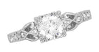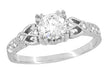 Art Deco Loving Hearts Antique Style Engraved 3/4 Carat Diamond Engagement Ring in 14 or 18 Karat White Gold
