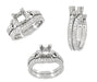 Sold without a center stone, this vintage engagement ring semi-mount design can be set with your own diamond or gemstone by your jeweler, or you can create your own custom heirloom engagement ring by adding a diamond above.