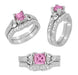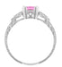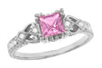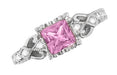 Art Deco Loving Hearts Princess Cut Pink Sapphire Vintage Style Engraved Engagement Ring in Platinum