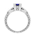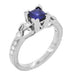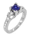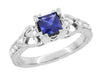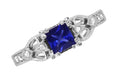 Art Deco Loving Hearts Princess Cut Blue Sapphire Vintage Style Engraved Engagement Ring in Platinum