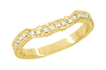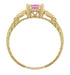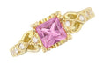 Art Deco Loving Hearts Antique Style Princess Cut Pink Sapphire Engraved Engagement Ring in 18 Karat Yellow Gold