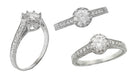Made to order in your choice of 14K or 18K white gold, this vintage design ring mounting is sold without a 1/2 carat center stone (a round brilliant cut diamond of 5.1 - 5.5 millimeters in diameter and approximately 0.50 carat in weight will fit perfectly).