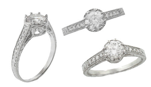 Royal Crown 1/2 Carat Antique Style Engraved Engagement Ring Setting in 14K or 18K White Gold | 5.5mm Round Ring Mount