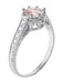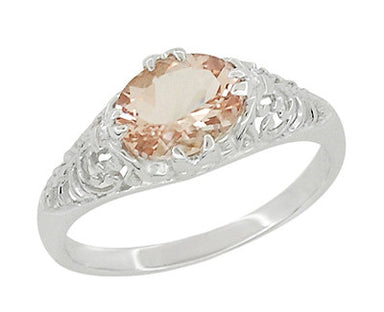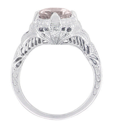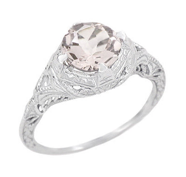 Art Deco Royal Crown Antique Style 1 Carat Morganite Engraved Engagement Ring in 18 Karat White Gold
