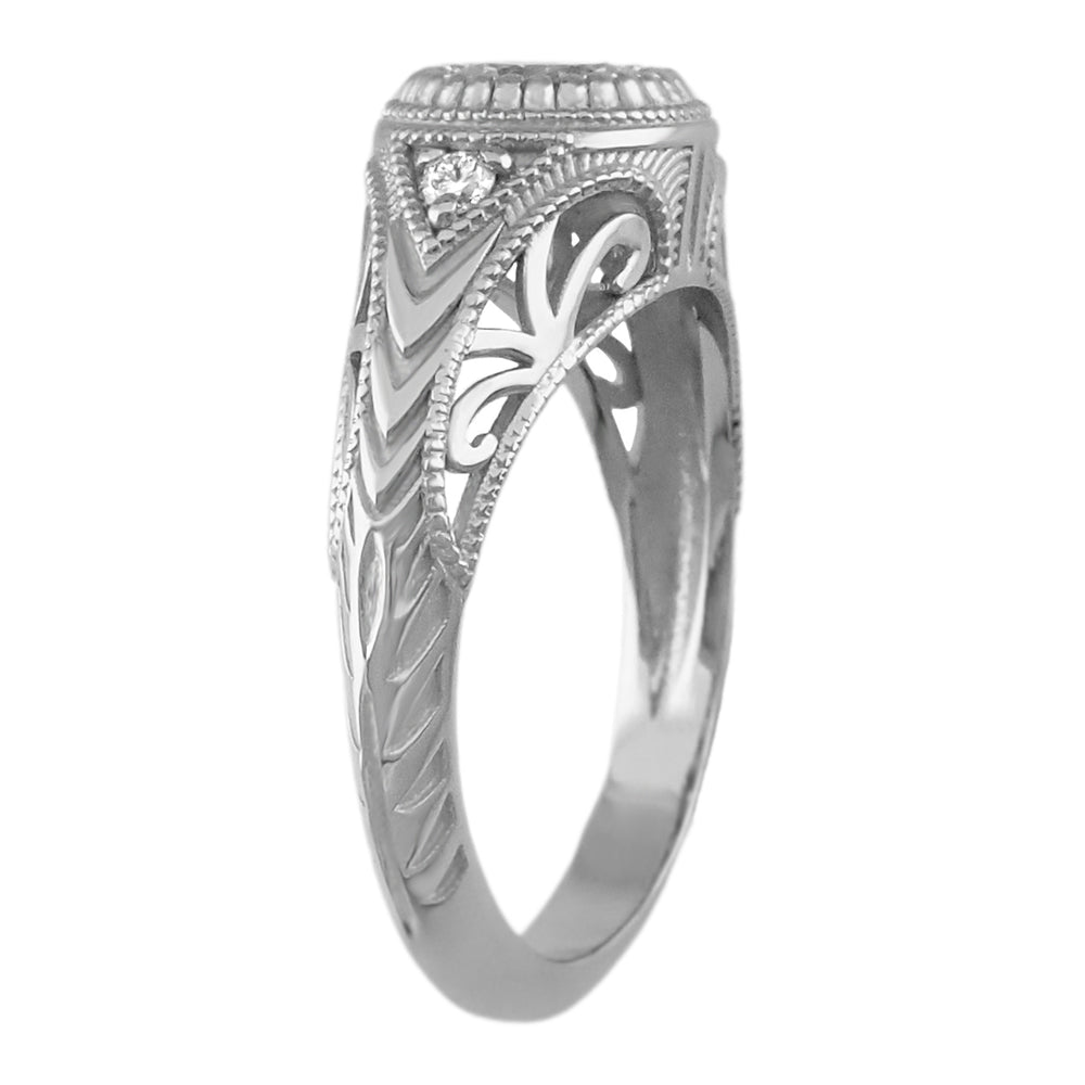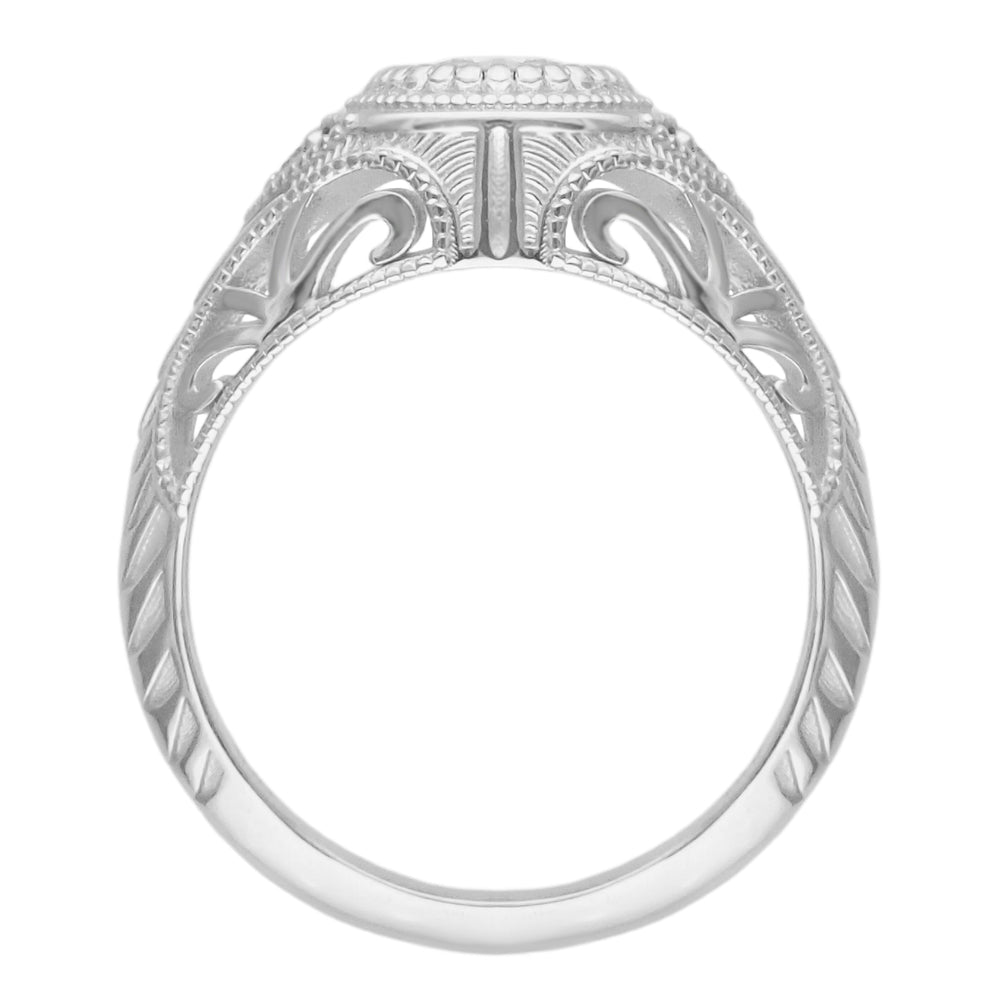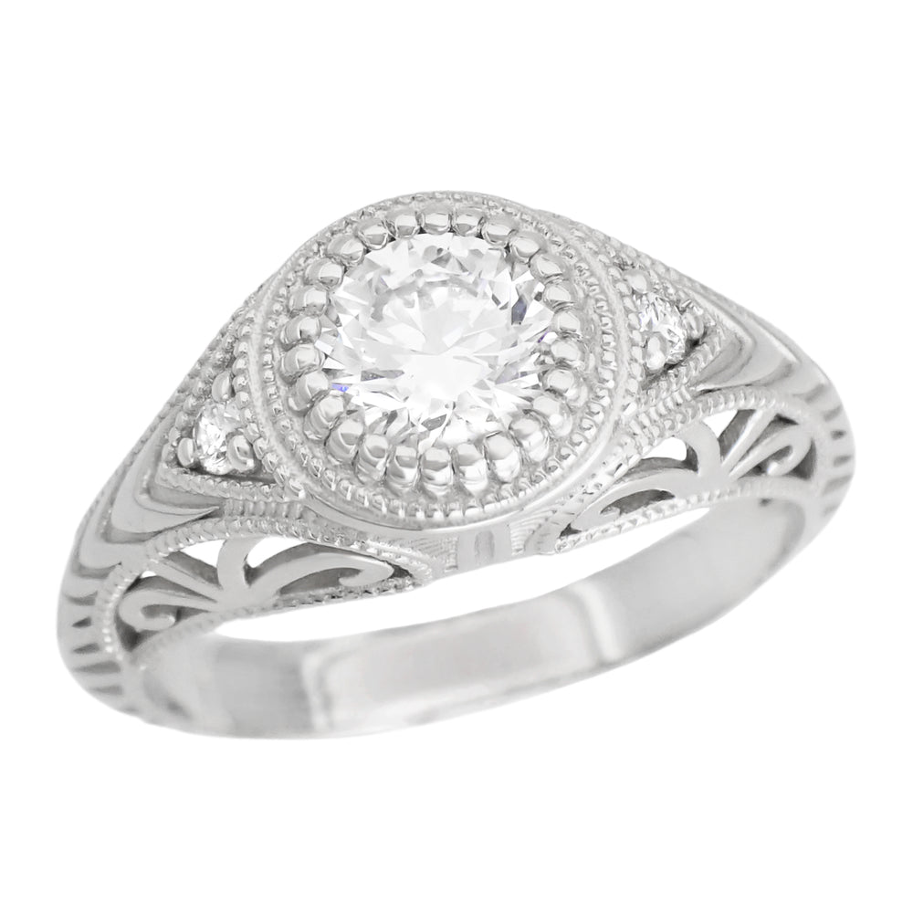 Art Deco Platinum Sculptural Filigree Low Dome 3/4 Carat Diamond Engagement Ring