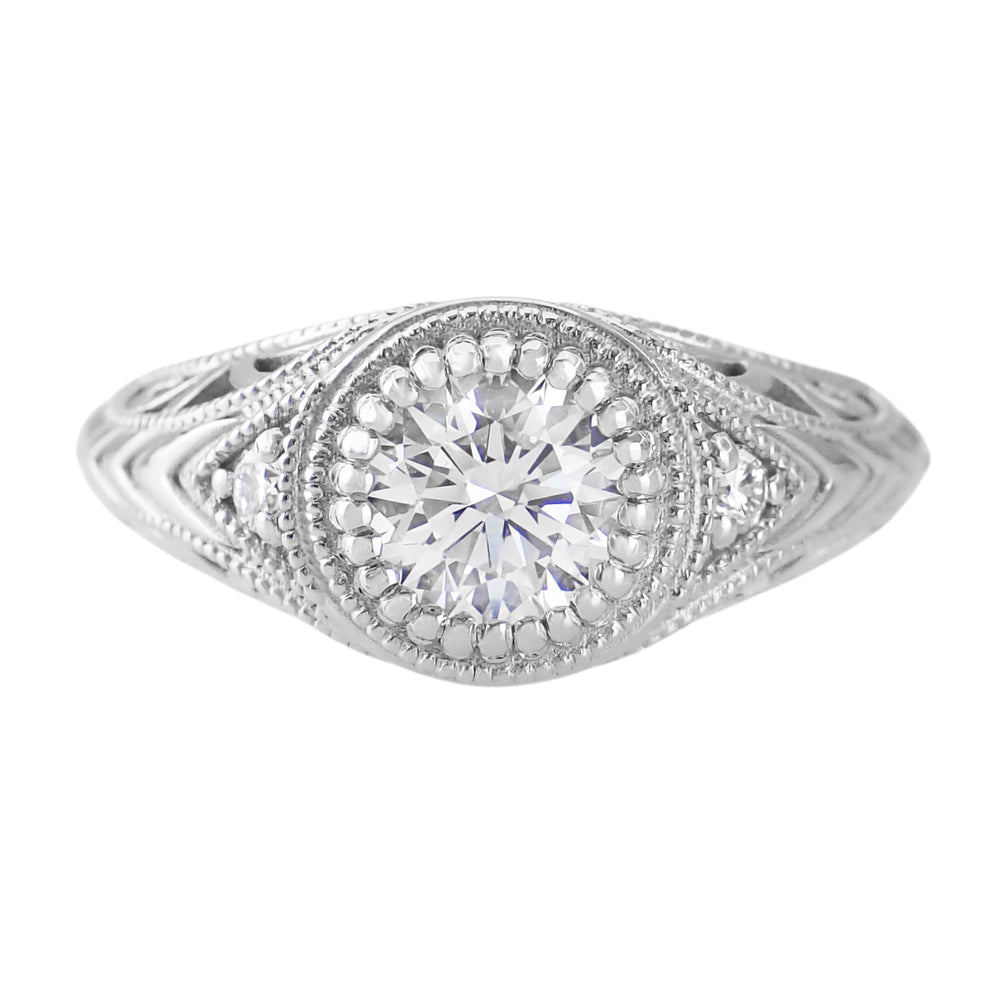 Crafted to order in exquisite platinum, create your own bespoke vintage style diamond ring by selecting natural diamonds or lab created diamonds!