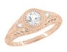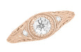 Art Deco Engraved Filigree Bezel Set Diamond Engagement Ring in 14 Karat Rose ( Pink ) Gold
