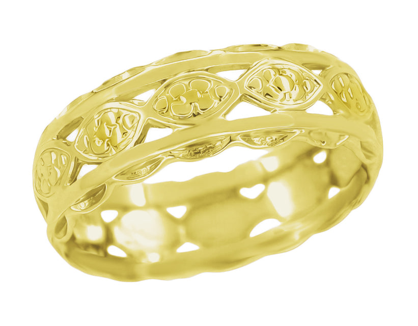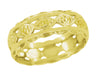 Art Deco Yellow Gold Scalloped Floral Open Filigree Wide Wedding Band - 6.5mm