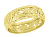 Yellow Gold Edwardian Flowers and Hearts Scalloped Filigree Wide Wedding Ring
