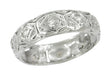 Circa 1920's, this intricately detailed Art Deco platinum antique wedding band is hand crafted in a floral inspired cut out design and light scatte...