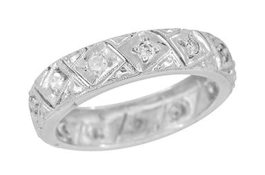 Riverton is a one-of-a-kind vintage diamond eternity band featuring a hand carved bold geometric pattern of continuous unbroken parallelograms, wit...