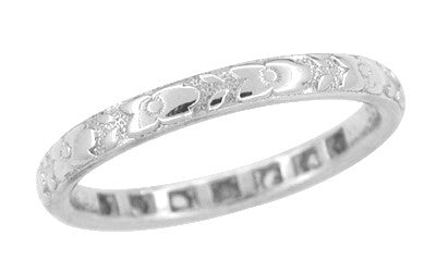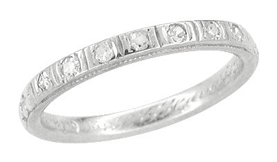 This elegant 1920's reissue Art Deco vintage diamond wedding ring design in white gold features a romantic hand carved scroll design decorating the...