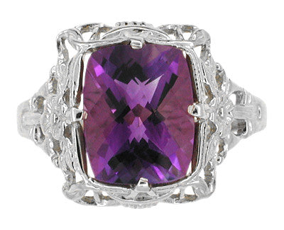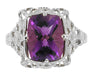 Art Deco Filigree Checkerboard Amethyst Ring in 14 Karat White Gold