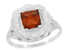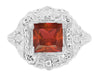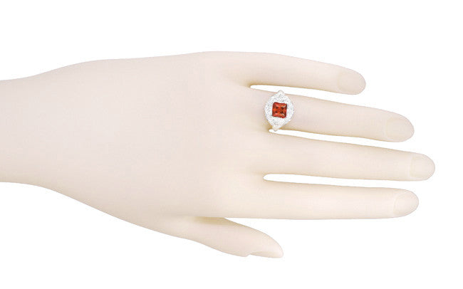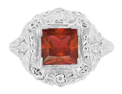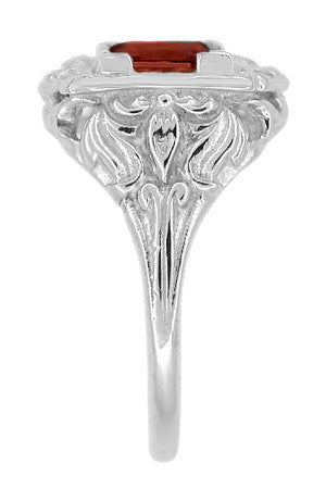 Art Nouveau Square Garnet Ring in 14K White Gold - 1910 Vintage Design
