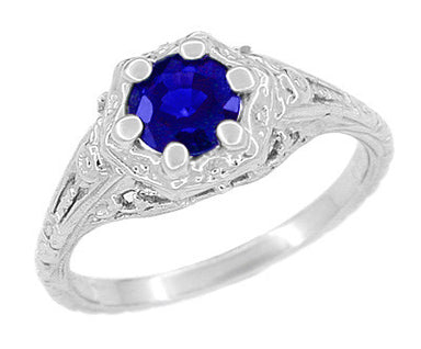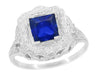 Art Nouveau 1.25 Carat Princess Cut Square Sapphire Ring in 14K White Gold | 6mm