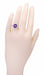 Perfect for wear as a cocktail or right hand ring, this wonderful vintage reissue amethyst ring measures 10.5 millimeters wide by 11.4 millimeters long at the top of the ring and sits 6 millimeters (1/4 inch) off the finger.