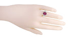 Elaborate floral filigree openwork is the perfect frame for the bold purplish-red garnet center stone, with millgrain beaded edges adding a touch of shimmer. A perfect garnet lover's statement ring, this gorgeous heirloom ring is certain to be noticed!