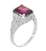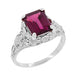 Filigree Emerald Cut Rhodolite Garnet Edwardian Engagement Ring in 14 Karat White Gold