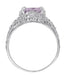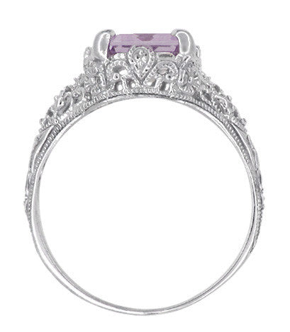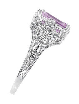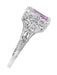 Edwardian Filigree Emerald Cut Rose de France Ring in 14 Karat White Gold