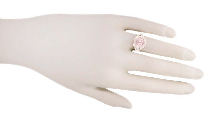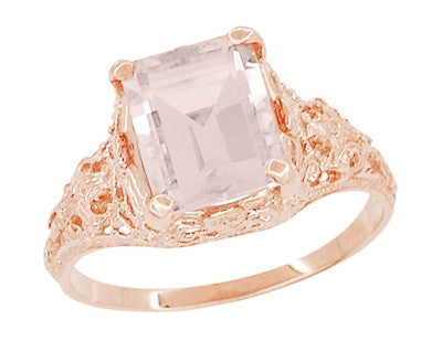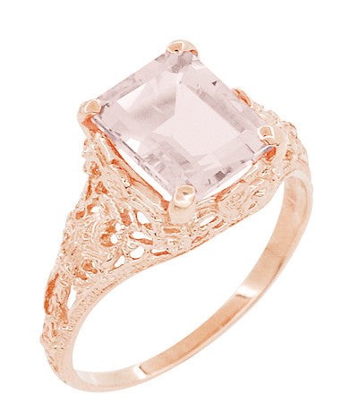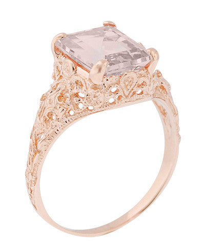 Emerald Cut Morganite Edwardian Filigree Engagement Ring in 14 Karat Rose ( Pink ) Gold
