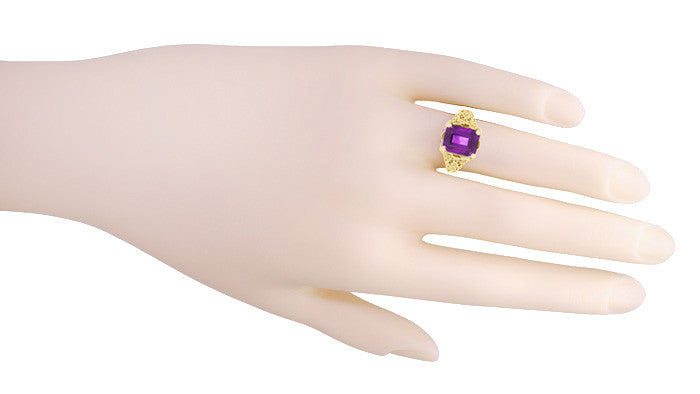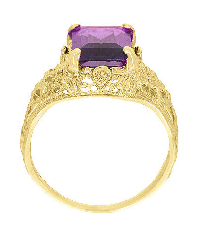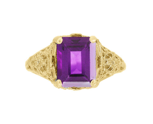 Yellow Gold Edwardian Filigree Emerald Cut Amethyst Engagement Ring