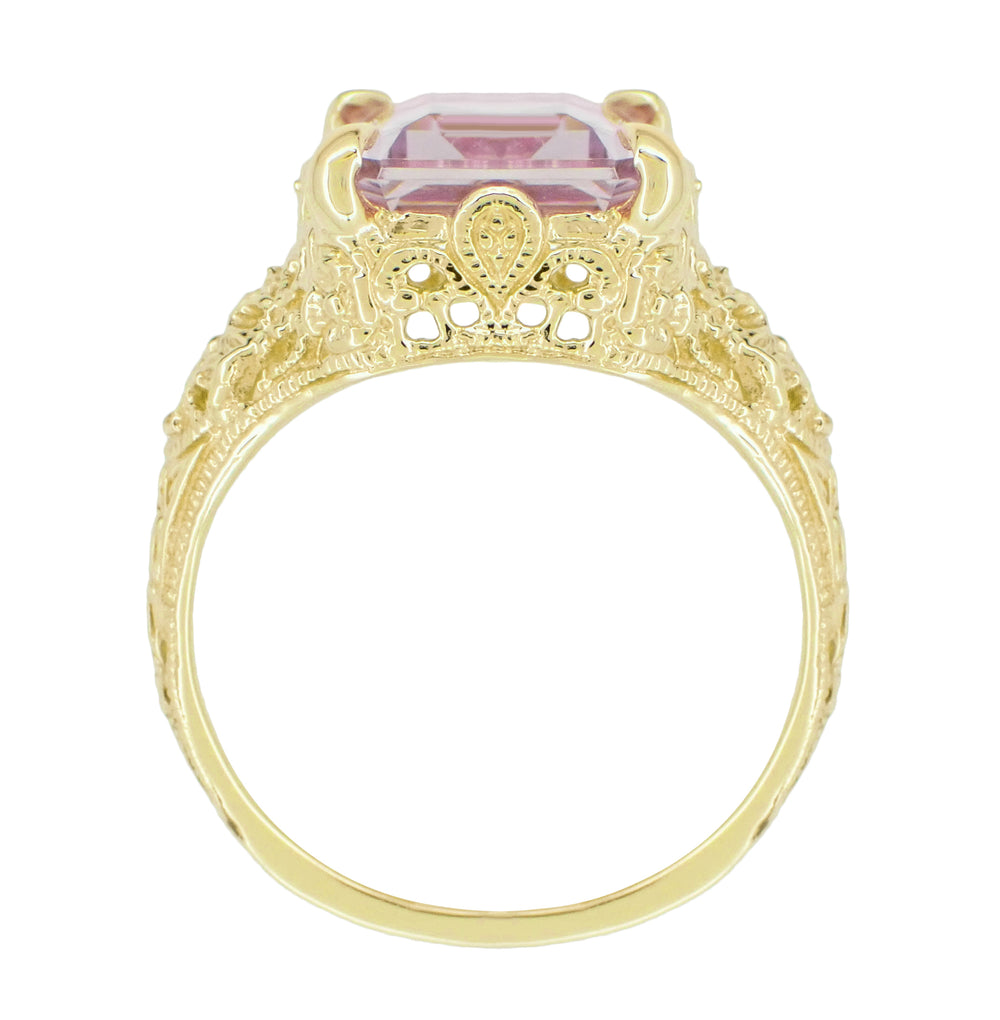 Yellow Gold Edwardian Filigree Emerald Cut Rose de France Ring