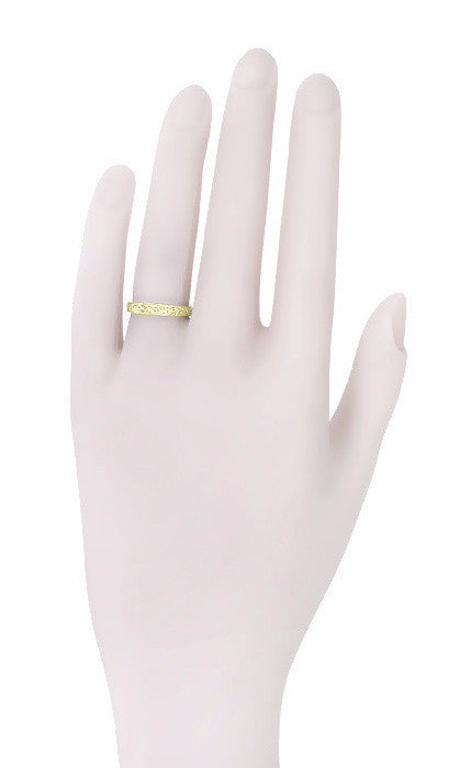 Art Deco Flowers and Leaves Carved Wedding Ring in Yellow Gold - 10K, 14K or 18K