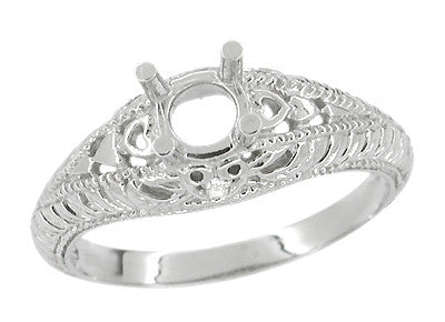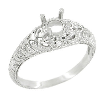 Art Deco Hearts and Diamonds Platinum Filigree Engagement Ring Setting for a 1/3 Carat Diamond