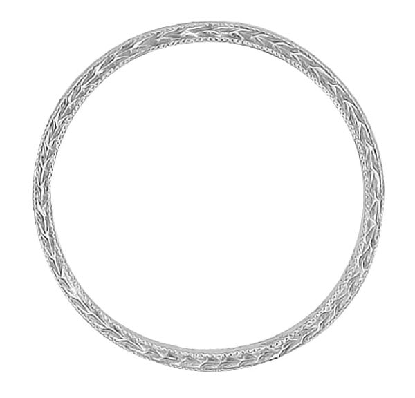 Art Deco Hand Carved Very Thin Wheat Wedding Band in Platinum