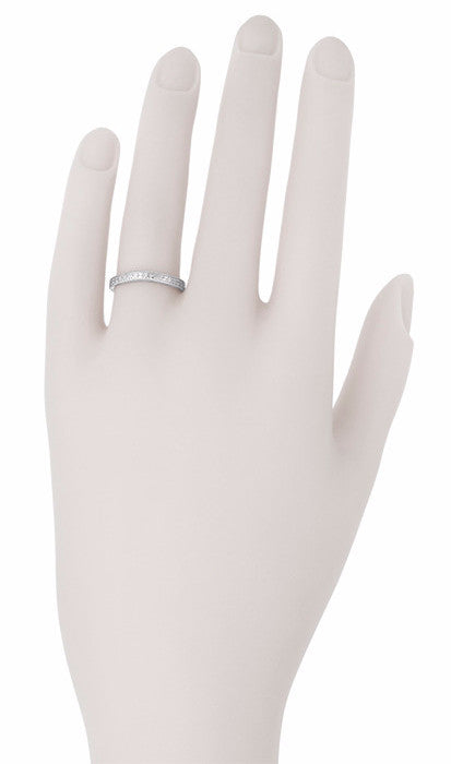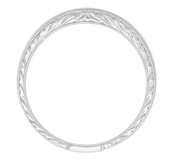 Art Deco Curved Engraved Wheat Wedding Band in White Gold