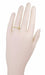 Artisan crafted in 18K yellow gold with a hand carved wheat design on the 2 outward facing sides of the band, this beautiful curved wedding ring is securely set with 11 round brilliant cut white sapphires for a total carat weight of 0.18, with millgrain beaded engraved edges for a shimmery finishing touch.