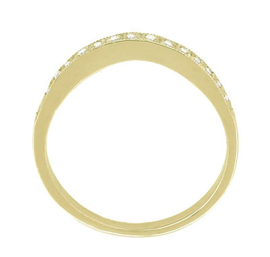 Art Deco Wheat White Sapphire Curved Wedding Band in 18 Karat Yellow Gold