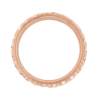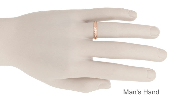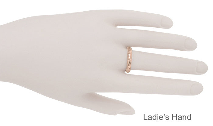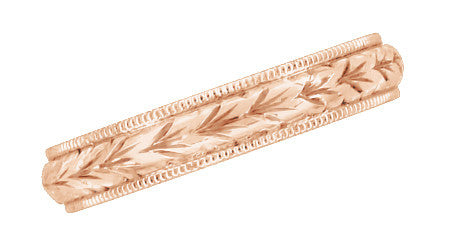 Art Deco Hand Engraved Wheat Wedding Ring in 14 Karat Rose Gold with Millgrain Edge - 4mm Wide