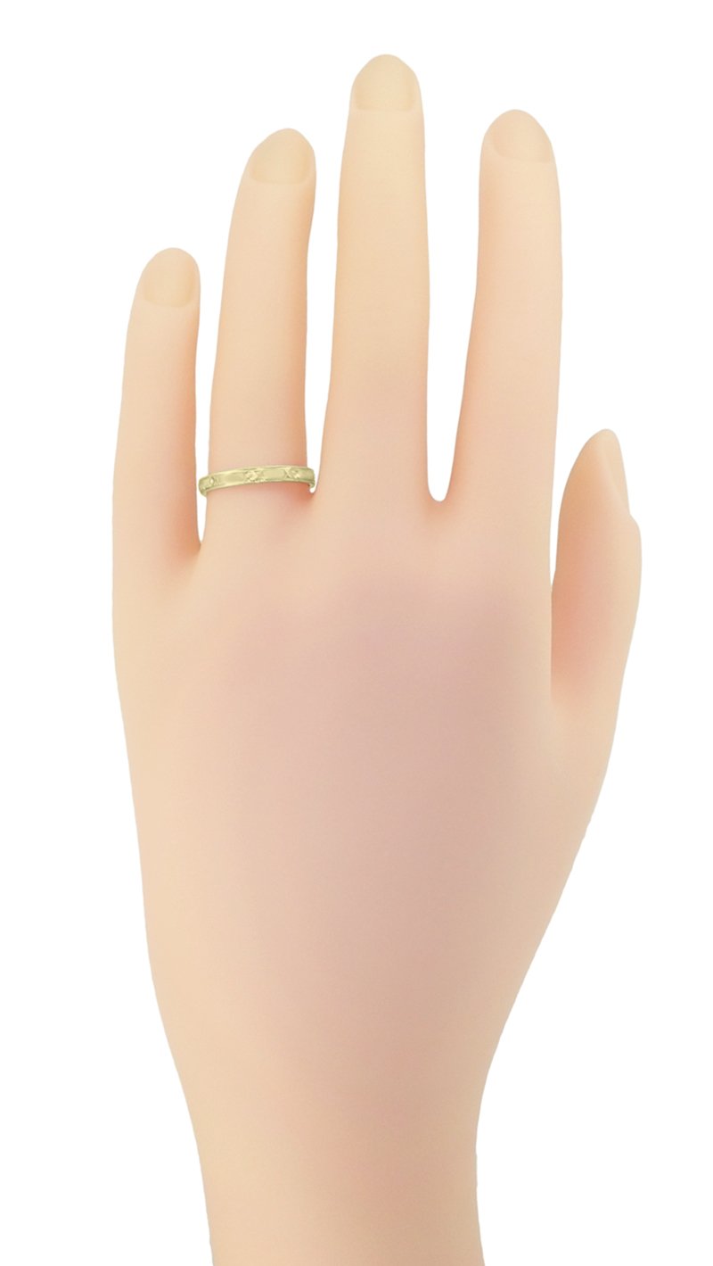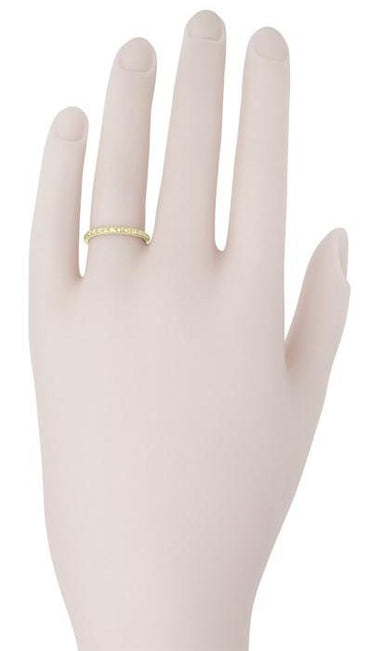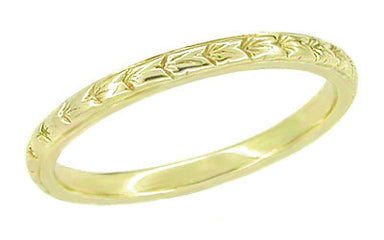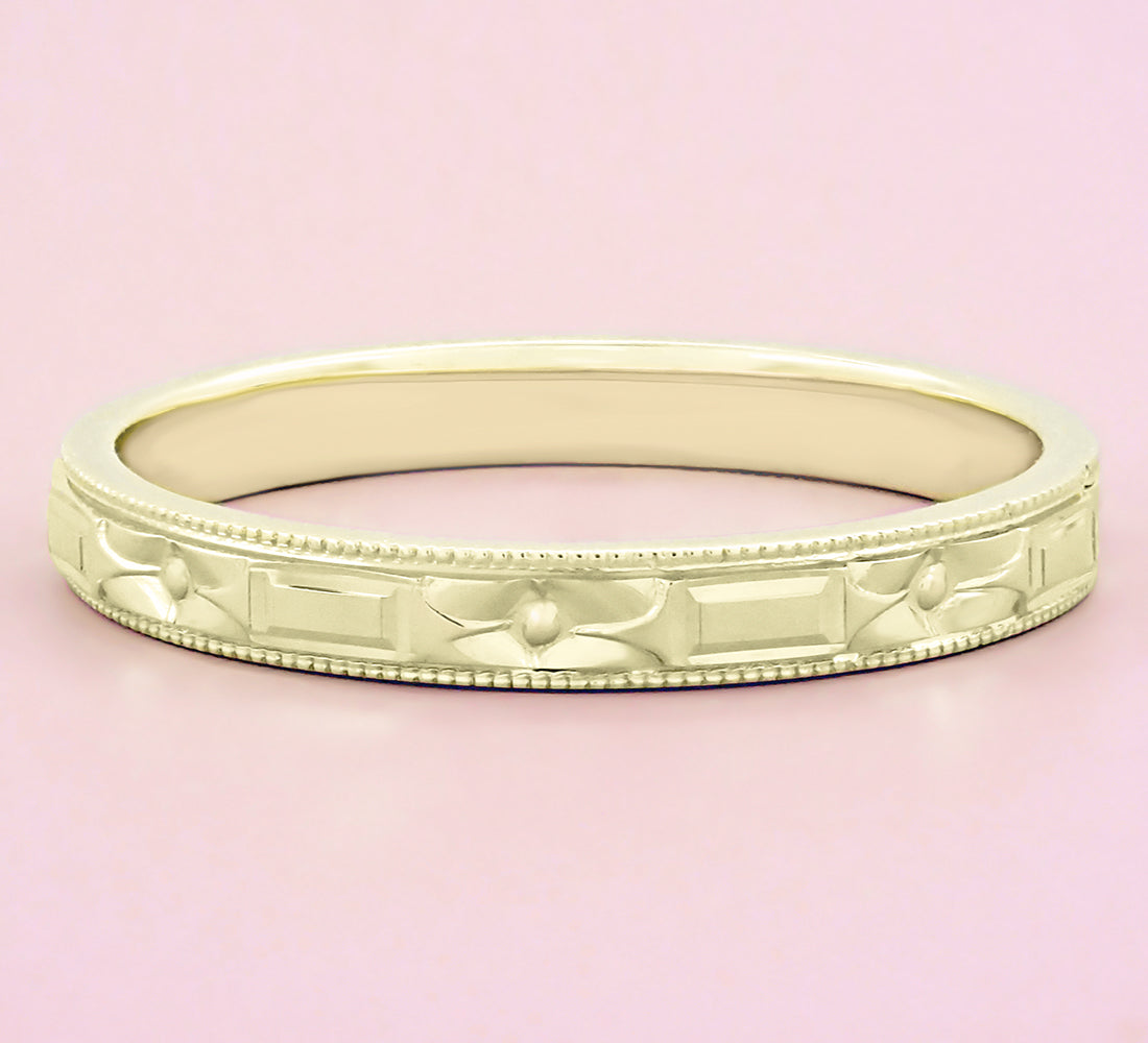 Art Deco Yellow Gold Carved Flowers and Bars Wedding Band