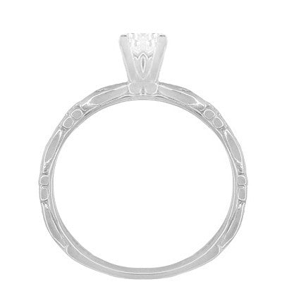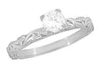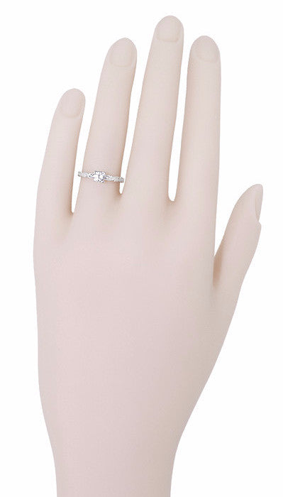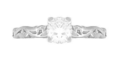 Art Deco Scrolls White Sapphire Engagement Ring in 14 Karat White Gold