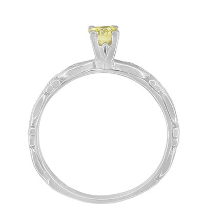 Art Deco Scrolls Fancy Yellow Diamond Engagement Ring in 14 Karat White Gold