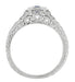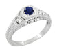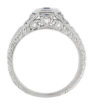 Art Deco Filigree Sapphire and Diamond Engagement Ring in White Gold | Antique Inspired Low Profile Ring