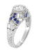 Art Deco Filigree Vintage Inspired Diamond Engagement Ring with Side Sapphires in 14 Karat White Gold