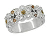 Spessartite Garnet and White Diamond Floral Wedding Band in 14 Karat White Gold