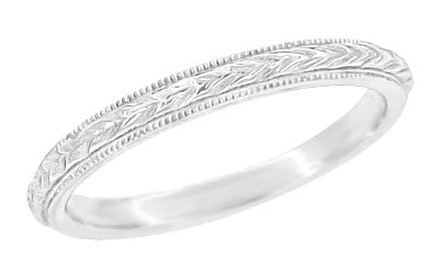 Art Deco Hand Engraved Wheat Millgrain Wedding Band in White Gold - 2.5mm Wide