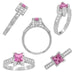 This unique square pink sapphire ring measures 6.4 millimeters wide at the top of the setting, tapering down to 2.5 millimeters wide at the bottom of the band, and sits 1/4 inch off the finger. A perfect symbol of your everlasting love, this wonderful 18 karat white gold filigree pink sapphire engagement ring is a showpiece that will be cherished for generations to come as a treasured family heirloom.
