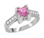 Art Deco 1/2 Carat Princess Cut Pink Sapphire and Diamond Engagement Ring in 18 Karat White Gold
