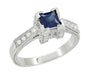 Art Deco 1/2 Carat Princess Cut Blue Sapphire and Diamond Engagement Ring in Platinum