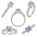 This ring measures 6.8 millimeters wide at the top of the setting, tapering down to 2.5 millimeters wide at the bottom of the band, and sits 1/4 inch off the finger. This wonderful 18 karat white gold filigree tanzanite engagement ring is a perfect symbol of your everlasting love.