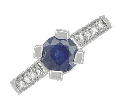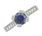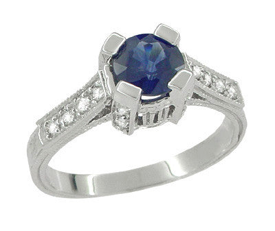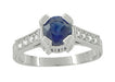 Luxe Deco Castle Blue Sapphire Engagement Ring in 18 Karat White Gold