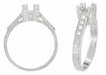 Sold without a center stone, you can customize this Art Deco antique inspired engagement ring semimount by adding a certified round 1 carat diamond above and our jewelers will complete your ring. Already have a stone? Purchase this ring mount with no stone, to be set with your own diamond or gemstone by your jeweler.