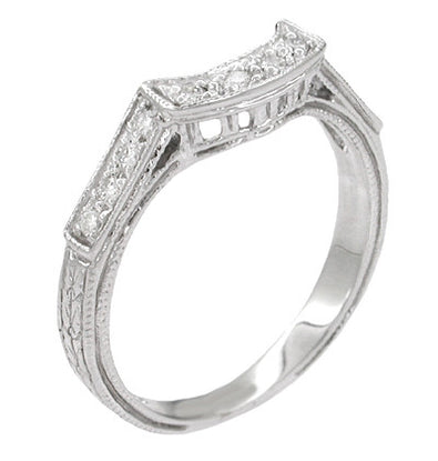 The refined center filigree citadel setting is embedded with 12 round brilliant cut diamonds, framed on each side with 4 round brilliant cut diamonds set into the top of the band. Wheat engraving on the outside of the band is framed with double millgrain edging on the sides, completing the exquisite design of this uncommon aquamarine engagement ring. Total count of round brilliant full cut diamonds in this ring is 20, of VS clarity and F/G color, with the total diamond weight for the ring without the center stone 0.20 carat.